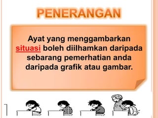 Posisi ini juga digelar sebagai libero. Unsur keterangan kepada kata nama ialah perkataan yang memberi pengertian ukuran. Contoh Ayat Perkataan berwarna.